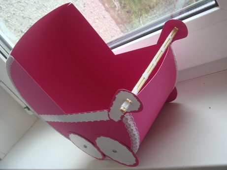 А ещё, я вчера сделала одну колясочку для сборов на мальчика/девочку/двойню. Осталось ещё 2 штуки сделать.. и как-то украсить немного эту))