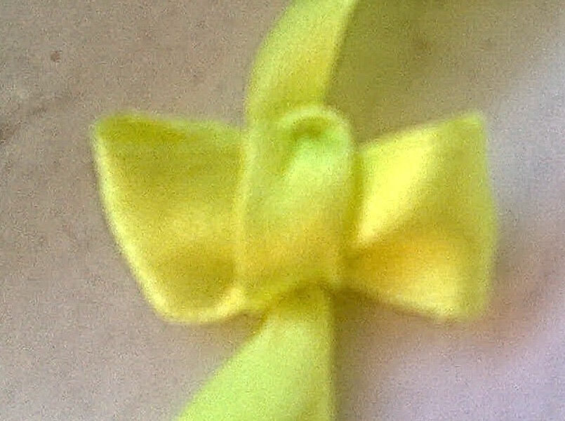 DOMASHKA, замечательные бонбонки! Очень аккуратненькие и качественные LENA_R, показываю бантики. Извиняйте за качество изображения. И все вязалось на одной ленте - других дома нету  Это бантик на вилке первым способом Вложение: