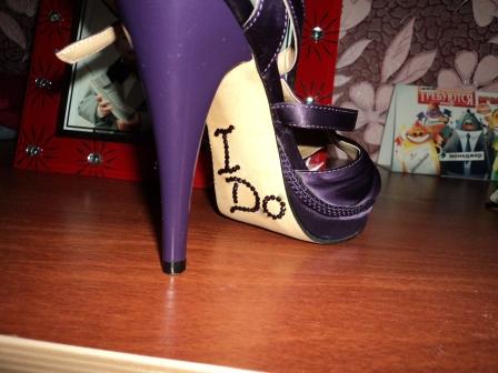 Квадратка, надумала себе невесть что! Все отлично, а фотограф вообще сфоткает как надо, все будет в самом выгодном свете. Лично мое мнение - не надо больше на этой туфельке никаких сердечек,  перегрузишь. Да и на второй я бы ничего не делала. Мне очень нравится такая асимметричность: акцент на фразу сделан, внимание не рассеивается. Очень кокетливо получается.