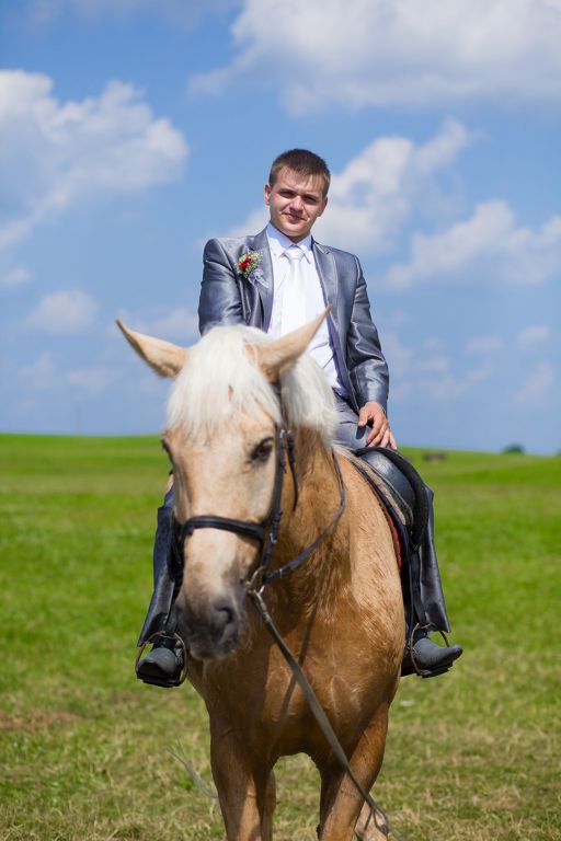 И вот мы приехали в Ратомку… Нас уже ждала 1 запряженная лошадь, а вторую в тот момент седлали т.к. мой конь был готов меня начали на него садить... Наши свидетели постоянно были рядом, свидетельница была с букетом, а свидетель таскал аппаратуру…
