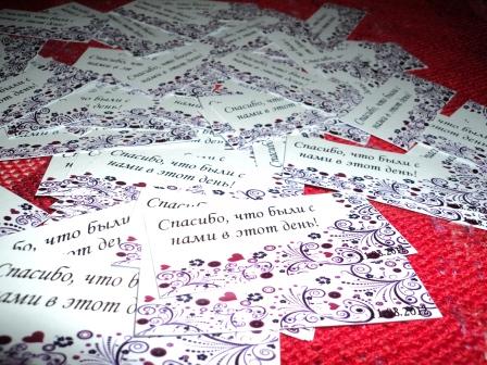 Achypa, нифига не помогает  Ток леденцы купила  Я аж удивилась её инициативе  Просто и у меня ещё характер такой: если хочешь, чтоб всё было сделано хорошо и вовремя - сделай это сам  Вообще у моих подруг ни интереса, ни энтузиазма к моей свадьбе)))))))))) Они ток критикуют и "я не хочу фоткаться на девичник!!!", "я не буду одевать фату!!", "ну я не знаю... ты всякой ерундой страдаешь...", "ахахахахахахаах, ну ты вообще!"  Они хорошие. Где-то ОЧЕНЬ глубоко)))))))))))))))  Просто им не понять, что свадьба - это не только крутая тусовка с кучей народа, приключениями и хавчеком. Хочется, чтоб гостям, кроме фото, что-то ещё осталось на память)))))))  Эх, что говорить.... А про рисунок я уже писала, что тебе ПАСИБКИ!!!!!! То, что надо! Melnikova, падарки не отдарки  они мне подарили цветы, а я уж сама решу, как с ними поступить)))))) П.С. мой БМ тож против Лариша,  ага  у меня просто передние не очень красивые... Кардинально ничего менять не будут, но немного низ подправят. А то буду обломышами улыбаться на фотках Прежняя спадает немного. Да и тупо мне не нравится))))))))))))))))))))) ужас я невеста)))))) Печатаю полностью всё в Копирыче (эт 3 этаж в Московско-Венском). Там вроде всё, чё хошь делают... Но надо уточнять. Цены.... Эмс... А что конкретно интересует? Просто я там много чего делала....