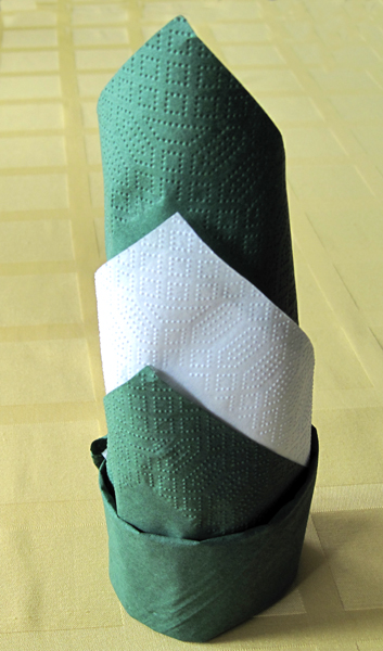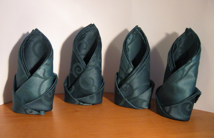 DOMASHKA, спасибо  Сегодня сшила 4 салфетки для стола молодоженов зеленого цвета (фото 1). Сложила их таким способом, чтобы можно было либо карточку рассадки разместить, либо другую "красивость" (фото 2, салфетки с пока только обычными карточками). Теперь ломаю голову, шить ли салфетки для гостей или обойтись бумажными (как, например, на фото 3). Что думаете?