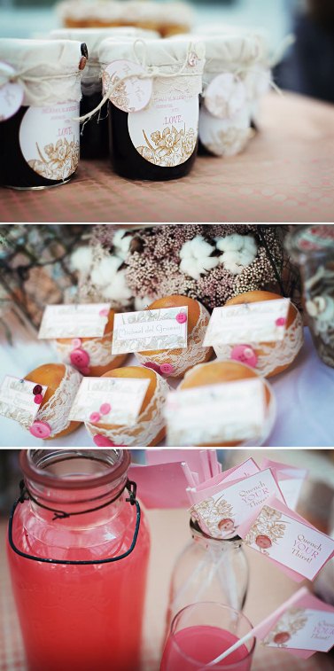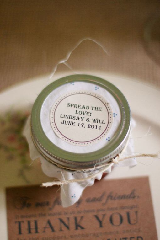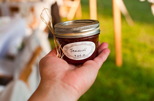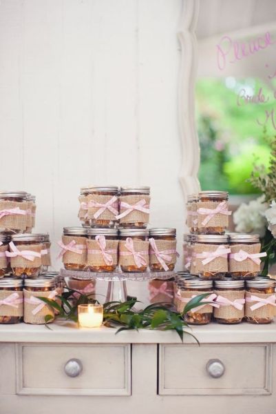 Стильно и красиво будет смотреться если банки будут одного размера и с одинаковыми крышками, а еще крышки можно покрасить из баллончика и наклеить ваши инициалы, дату свадьбы, герб семьи