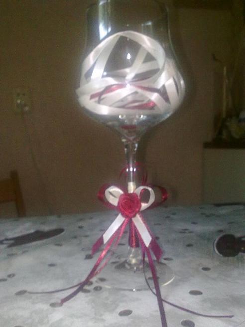 вчера я сделала карточки (которые стырила сначала у крохи, а потому у точки  ) не думала, что это такое длительное занятие... пока вырезала картона основу (плотный брала, от коробок больших), пока обклеила ее бумагой подарочной (она из далека кажется картонной, но на ней есть полосочки, и вообще она мне очень нра), потом приклеила сами надписи... и у меня возник вопрос, нужно туда добавить ленточки или нет? не обязательно этого цвета, это просто пример) просто у меня рамочки не очень ровно напечатались, в смысле там от одного края отступ меньше, чем от другого.. но может это и не так уж и важно?) а еще я сфоткала один свой бокал, не знаю обрезать эти длинные ленты или оставить)