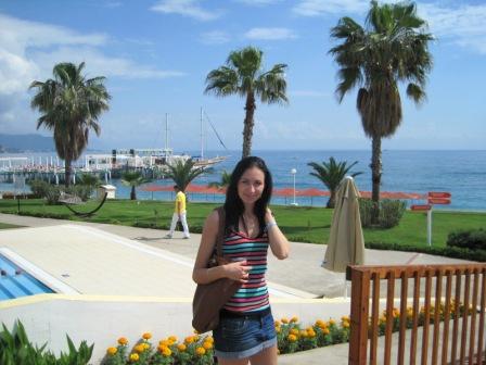 Буквально на следующий день мы решили ехать в свадебное путешествие, и чем раньше, тем лучше. Начали искать турфирму, которая отправит нас срочно. И нашли! Забыла рассказать про свои шикарные кудри. Теперь их у меня нет… После свадьбы я решила расчесаться. А нифига не получилось, перемывала 5 раз и все равно – колтун в пол головы. Я уже и плакала, и мазала чем только можно – все равно после каждого взмаха расческой – минус прядь. И я решила, лучше проиграю в длине, чем в густоте))) Муж повез в парикмахерскую, тк не мог больше слушать стоны боли.. И меня обчекрыжили))) Жалко было конечно, но зато мне так хорошо стало. Буду с чистой совестью снова отращивать))) Мужу не хватает))) Нам было абсолютно все равно куда ехать – страна, курорт, отель значения не имели, лишь бы после всех событий наконец-то отдохнуть! И душой, и телом. И вот, через два дня после свадьбы мы уже сидели в поезде, направляющемся в Москву, с путевками и бооольшим чемоданом))) И как по волшебству наши места в разных купе благодаря соседям превратились в места в одном! Наверное это самые радостные моменты в жизни – дорога на море)) На самолете лететь было очень страшно – для обоих был первый полет, раньше старались избегать самолетов, но наконец-то решились. Пару часов страха – и мы в Турции! И тут дни полетели, как это обычно бывает в отпуске. Много чего запомнилось – и поход в горы, и поездки на яхте, и встреча рассвета, и сюрприз в виде приехавшей в гости подруги с мужем, живущих в Турции, и Средиземное море, после которого возвращаться на Черное уже не хочется…Все-таки совсем по-другому ощущаются отношения с любимым человеком, когда находишься в отпуске! Когда нет вечных проблем, дурацкой работы, братьев-сватьев как я люблю говорить))) Нет поводов для ссор, раздражения, только море, солнце, и муж! Дни пролетели быстро и, уезжая, мы пришли к выводу, что сюда еще вернемся! Турции, Румынии – быть, Болгарии – категорическое нет) По возможности открывать новые места)) А на отдых в целом ездить просто жизненно необходимо – лучше отказать себе в походах в кафе-рестораны, в очередных туфельках или сумке, но на отдых копить обязательно.
