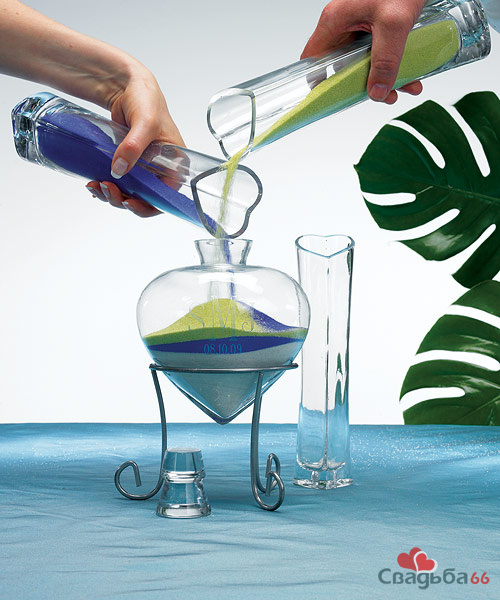 В ходе Песочной церемонии молодожены засыпают песок двух цветов в красивый сосуд, что символизирует соединение двух жизней в одно целое.В итоге в сосуде получаются красивые узоры