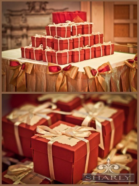 И еще наконец-то определилась с цтевом свадьбы.... Это будет (не знаю как правильно называется цвет...) что-то типа терракота (мягкий красный) и золотой... я думаю для осенней свадьбы в самый раз)) Вот фото оформления в таком цвете, которое мне понравилось. Но украшать планруем сами... Может кто подскажет, стоит ли самой украшать, или довериться профессионалам? Цена у них неоправданно завышена... Вложение: