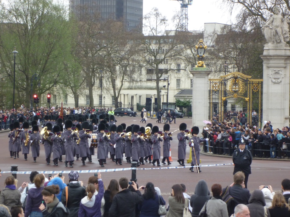 Немного Лондона моими глазами смена караула у Букингемского дворца - поражает количество туристов, которые собираются за час до этого шествия. Был небольшой дождь и поэтому гвардия в сером, а не в красном - могу только представить как это эффектно выглядит в красном. Мой БМчик рассказал, что каждая маленькая английская девочка мечтает выйти замуж за одного из королевской гвардии - так мило Вложение: