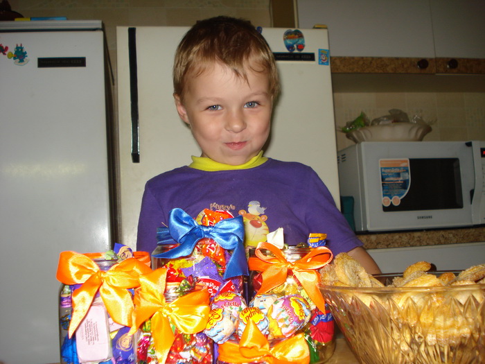 Ой, я уже жду не дождусь, когда будут фоточки с ним. Дома нафоткали+на улице, когда нас провожали. Ту огромную конфету он съел ВСЮ!!!))))))))))) Правда, судя по рассказам, ел целый день))))))))))))))))