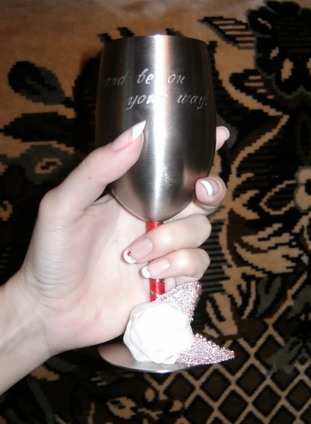 Пока сох один из слоев маникюра, обнаружила, что украшения на бокалах можно укрепить еще в одном месте, что и сделала.