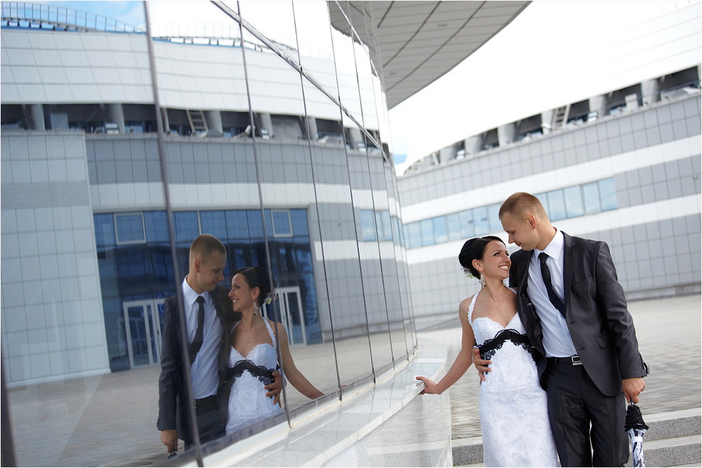 Нам очень повезло с погодой.  Я за нее переживала, ибо недели 1,5 до свадьбы шел дождь, и не просто шел, а лил… каждый день… А в день свадьбы дождя не было (только под вечер в часика 22 прошел дождик… отлично… жду прихода богатства))))))))… небо было то затянуто, то выглядывало солнышко… было ни жарко, ни холодно… правда на Минск-арене я немного под конец съемки уже продрогла, ибо дул сильный ветер…  а алкоголь мы пить не успевали ))))))))))