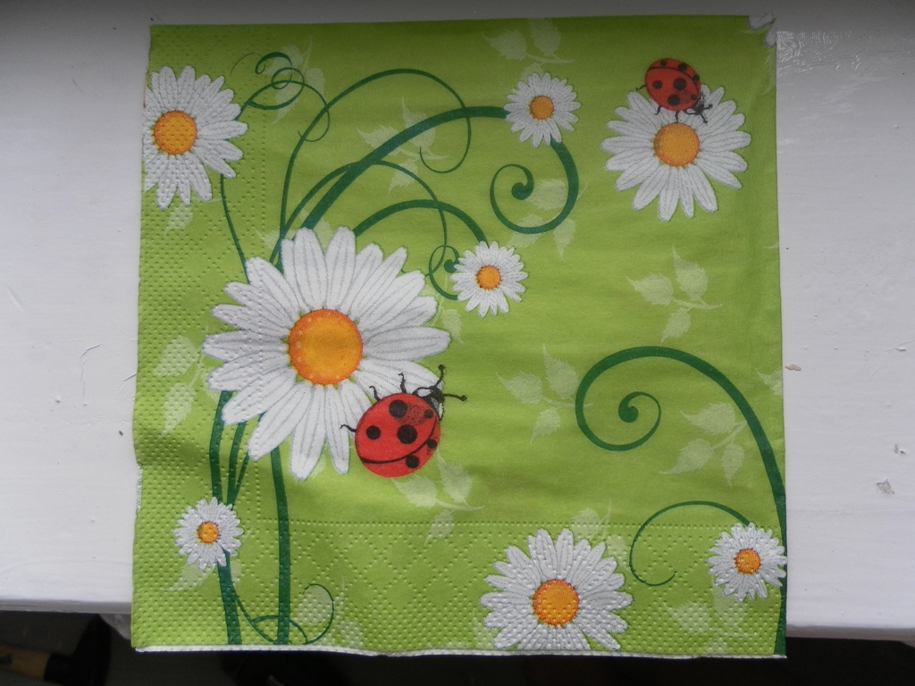 4) уже давновато купила салфетули с ромашками =) классные, просто не могу. Буду использовать либо на декупаж, либо на стол положить. Если на стол, то буду еще докупать. Вложение: