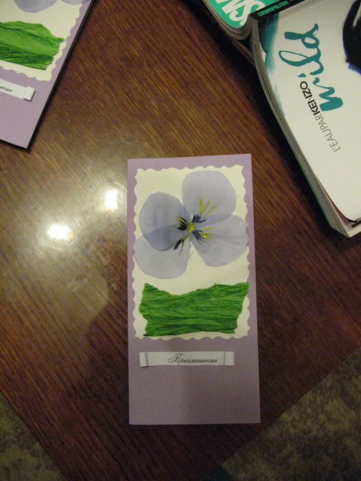 рассадки тоже будем делать сами,они будут совсем простые-на сиреневом фоне белые полоски с именами.
