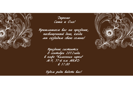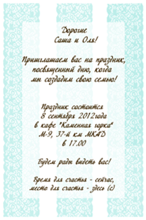 Лиса-Алиса, мне второй вариант больше нравится! (и приГлашаем)Только надо имена местами поменять, а то получается, что невеста - Витя, а жених - Алеся