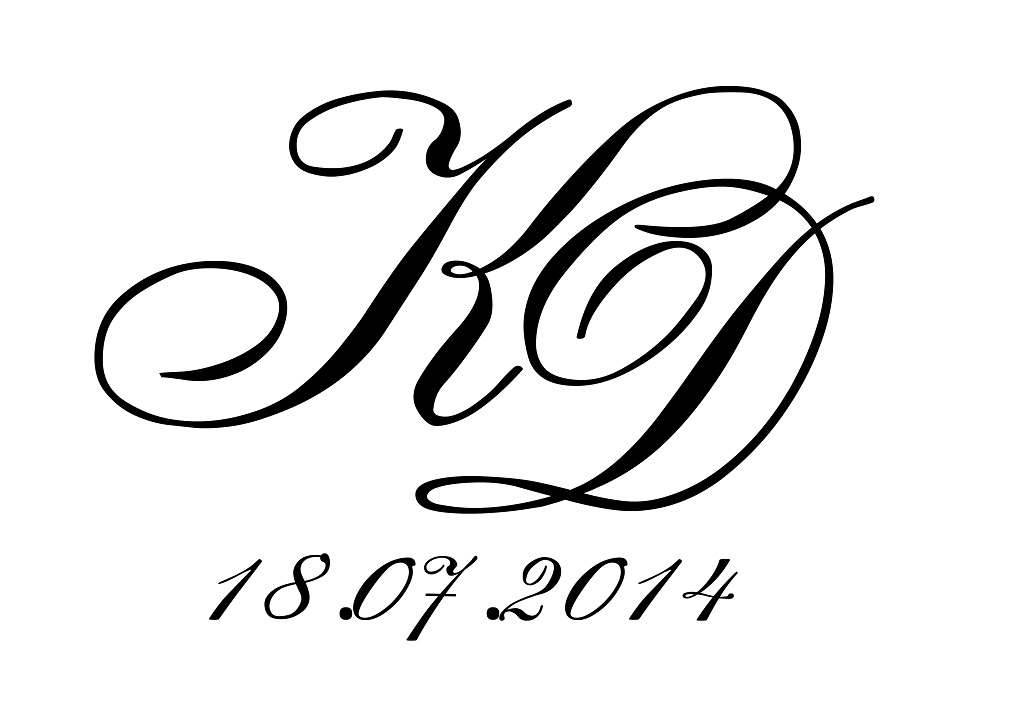Как приятно, что почти что через 3 (три!!!!) года наши идее возрождаются снова! Правду говорят, что все новое - это хорошо забытое старое! Вот такой вензель был у меня на свадьбе (мы использовали его на бонбоньерках, карточках рассадки, в украшении зала). Советую больше переплетать буквы (теснее переплетать) - чтобы получилась вязь.