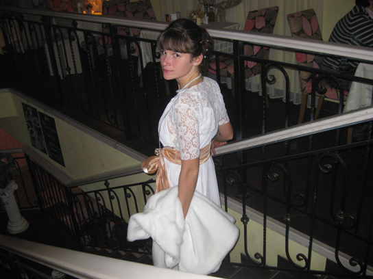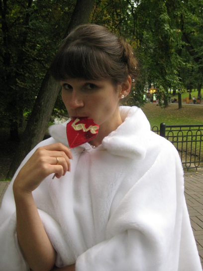 платье всетаки было сшито - как всегда на скорую руку, практически "я тебя слепила из того что было". получилось конечно очень-очень далеко от оригинала, но вроде как тоже ничаво) чтобы не замерзныть пришлось еще шить меховую пелеринку.