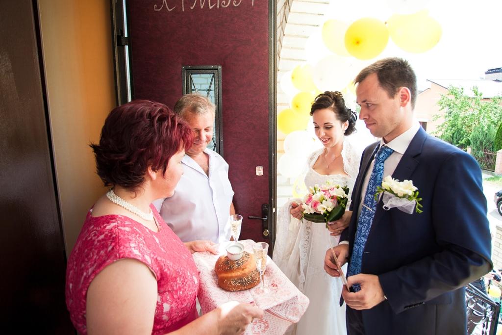 Дело в том, что моя мама немного суеверна в отношении как бы сказать "казенных домов". Т.е. для нее принципиально, чтобы сборы невесты/жениха были дома, встреча молодых дома, одевала фату мне мама, а не парикмахер. Поэтому "хлеб-соль-битые рюмки" были у нас дома.
