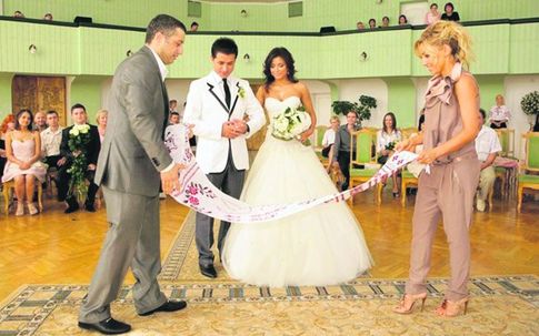 Прикольно)) А моя сестра как в Голливуд собирается: муж в черном фраке а у нее платье в пол!