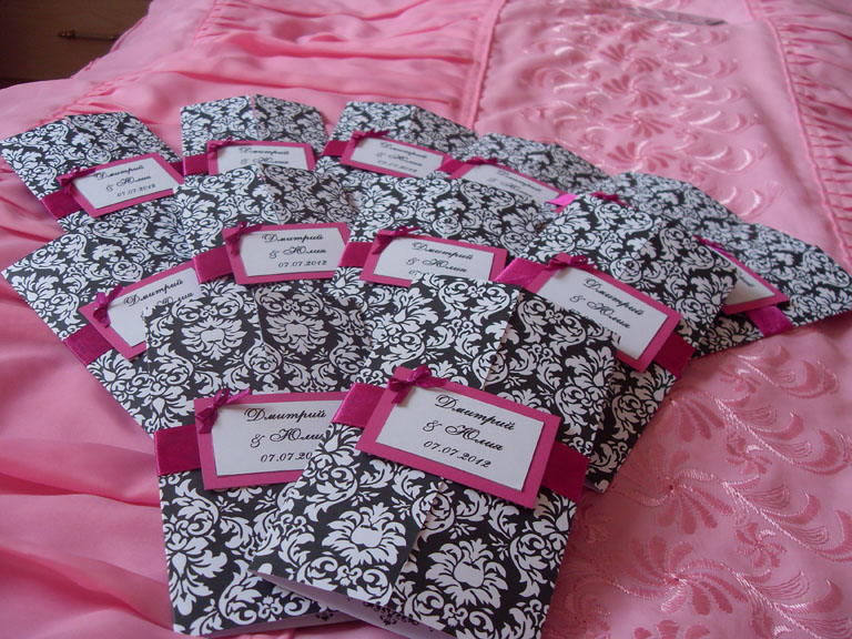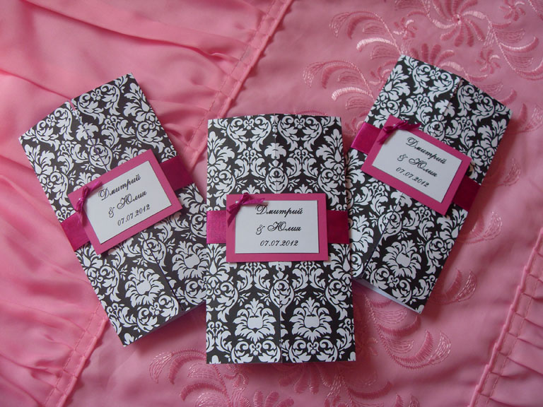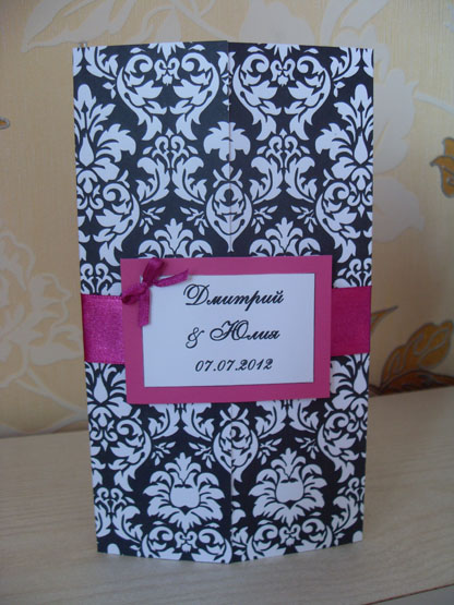 Из новостей. Съездили с БМчиком в Витебск. Сделали половину пригласительных и раздали их. Мы их немного переделали: ленту сделали поуже (по совету Жени) и приделали бантик (как же я рада, что нашла мк по их изготовлению на вилке  ). Вот что получилось. Вложение: