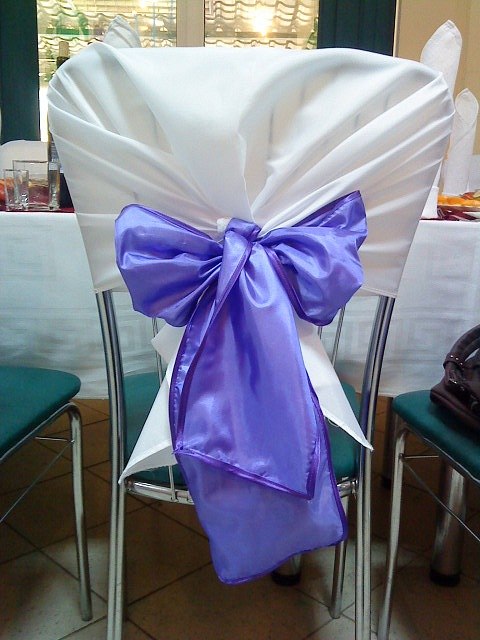 Melnikova подвязочка супер!!!!!по поводу украшения стульев...у нас стулья похожи на ваши...спинка тоже металлическая, но немного другая, когда я оговаривала украшение стула выбрала похожее на это(бант немного поменьше,и цвет естественно фиолетовый), у нас тоже 90 человек, поэтому сильно тратиться именно на стулья мне не хотелось