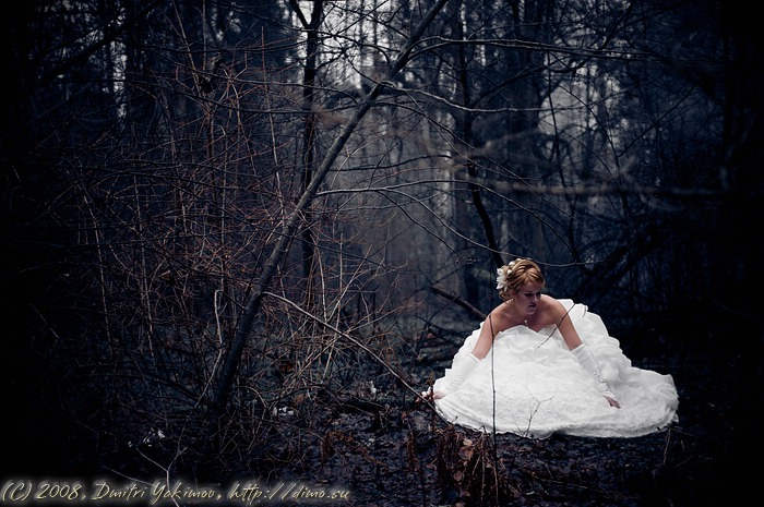 За месяц до свадьбы мы встретились с нашим фотографом для обсуждения фотосета и в надежде придумать что-нибудь интересное... Так сказать, собрались для "мозгового штурма" ))) То, что у нас нет банкета, а соответственно и ограничений по времени, конечно же ему понравилось =D> Для съемки обсуждали театры-музеи, кафе-рестораны, боулинги-бильярды, развл.-торг. центры, крыша-поле... Все интересно, но как-то... Не наше, что ли ))) Хотелось безумия ))) Дмитрий предложил поехать на природу, на шашлык... Вроде как и понравилась идея, но снова что-то не то... А потом... начали развивать... Палатка, гамак, костер, болото - и всё это в ноябре ))) Вот это НАШЕ!!! Идею мы серьезно приняли на вооружение (на случай плохой, нет, отвратительной :), погоды у нас есть продуманные варианты интерьерной съемки, но об этом не буду пока что - всё-равно не понадобится :mrgreen: ) и поехали домой. Я стала ползать по Интернету в поисках фоток, идей... И мне все больше и больше нравилась эта идея )))