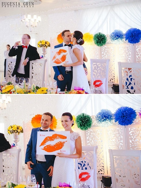 Всем привет! Тут наверно нечасто создают темы после, собственно, главного события Но так уж получилось, что форум этот я почитывала и ранее, а вот создать собственную тему руки не дошли  Теперь же хочу поделиться рассказом/фото не хвастовства ради, а может вдруг кому она окажется полезной, может кто-то захочет идейку перенять или какие-либо отдельные моменты на заметку взять. Тем более, что у меня осталось много реквизита/часть декора/и почти весь наряд невесты (платье, туфли, заколка, клатч) - которые я продаю или могу сдать в аренду (по этому поводу пишите в л/с, а также позже смотрите темки в разделе барахолки)). А пока расскажу немного о нас и нашем сумасшедшем событии)) Зовут меня Саша, а уже состоявшегося мужа Женя. Познакомились в июне 2012 года, в Литве, на общем мероприятии, которое организовал литовский БМВ клуб совместно с нашим белорусским БМВ клубом. Да, мы оба -бмв-шные маньяки  Причем, как выяснилось потом, ранее тоже бывали вместе на одних и тех же мероприятиях, но как-то вот друг друга не замечали). Целое лето еще каждый из нас болтался сам по себе (ну раза 2-3 встретились еще), а вот с приходом осени отношения переросли в нечто более серьезное, а уже в августе 2013 года Женя сделал мне предложение. Рассказать тут особо нечего: романтик что с него, что с меня, еще тот  Наверное самое главное, что нас объединяет- это страсть к путешествиям, к новым местам, "смене декораций"... вобщем, абы дома не сидеть)). Вот и в этот раз решили в конце августа съездить в собственно придуманный авто-евро-тур: Польша- Чехия- Австрия- Италия- Сан-Марино-Швейцария- Франция- Германия-Польша- Литва. И вот в разгаре путешествия, на адриатическом побережье Италии, одним чудесным теплым вечером, возможно под влиянием свежего морского воздуха и бутылочки итальянского красного вина (а может двух  ), по дороге с пляжа в отель, Женя упал на одно колено (чем здорово меня напугал, я подумала сначала, что может вина перебрал  ) и спросил выйду ли я за него. Думала я в совокупности минуты полторы тк первое, что пришло мне на ум- это ситуация со сменой фамилии (меня всю жизнь подруги зовут Белкой (производное от фамилии), а у Жени фамилия, от которой легко образуется производное в виде Овцы  )). Но конечно же согласилась. Правда утром все же переспросила, дабы удостовериться, что предложение было сделано не под воздействием зеленого...о то есть красного змия  . Но товарисч Женя подтвердил серьезность своих намерений). Повторюсь, тк романтики из нас, честно говоря, фиговые, то изначально была выдвинута мысль сбежать от всех в Мексику и расписаться под водой в аквалангах (мы оба серьезно занимаемся дайвингом и сейчас проходим уже 3ий уровень сложности Rescue Diver). Потом во мне, как в более спокойном персонаже этой истории, все же взыграла совесть и путем долгих разговоров и уговоров мы все же решили остаться на Родине и сделать свадьбу не только для себя, но еще и для близких и любимых людей (коих по итогу собралось 100 человек  ). Далее мы еще раз 8 переносили планируемую дату мероприятия. Эмс...примерно с февраля 2014 по июнь 2014 из-за разных дел, дней рождений родственников, отпусков и тд  Пока не остановились на 21.06.14. Тема была выбрана абсолютно спонтанно, без каких-либо подтекстов и скрытых смыслов: Crazy Rainbow Wedding. Просто потому что ярко, красочно, жизнерадостно, по-летнему и радуга- символ преображения, м