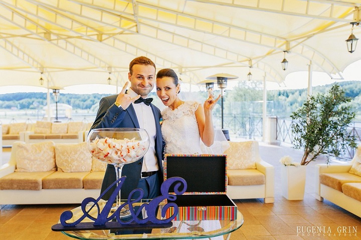 Всем привет! Тут наверно нечасто создают темы после, собственно, главного события Но так уж получилось, что форум этот я почитывала и ранее, а вот создать собственную тему руки не дошли  Теперь же хочу поделиться рассказом/фото не хвастовства ради, а может вдруг кому она окажется полезной, может кто-то захочет идейку перенять или какие-либо отдельные моменты на заметку взять. Тем более, что у меня осталось много реквизита/часть декора/и почти весь наряд невесты (платье, туфли, заколка, клатч) - которые я продаю или могу сдать в аренду (по этому поводу пишите в л/с, а также позже смотрите темки в разделе барахолки)). А пока расскажу немного о нас и нашем сумасшедшем событии)) Зовут меня Саша, а уже состоявшегося мужа Женя. Познакомились в июне 2012 года, в Литве, на общем мероприятии, которое организовал литовский БМВ клуб совместно с нашим белорусским БМВ клубом. Да, мы оба -бмв-шные маньяки  Причем, как выяснилось потом, ранее тоже бывали вместе на одних и тех же мероприятиях, но как-то вот друг друга не замечали). Целое лето еще каждый из нас болтался сам по себе (ну раза 2-3 встретились еще), а вот с приходом осени отношения переросли в нечто более серьезное, а уже в августе 2013 года Женя сделал мне предложение. Рассказать тут особо нечего: романтик что с него, что с меня, еще тот  Наверное самое главное, что нас объединяет- это страсть к путешествиям, к новым местам, "смене декораций"... вобщем, абы дома не сидеть)). Вот и в этот раз решили в конце августа съездить в собственно придуманный авто-евро-тур: Польша- Чехия- Австрия- Италия- Сан-Марино-Швейцария- Франция- Германия-Польша- Литва. И вот в разгаре путешествия, на адриатическом побережье Италии, одним чудесным теплым вечером, возможно под влиянием свежего морского воздуха и бутылочки итальянского красного вина (а может двух  ), по дороге с пляжа в отель, Женя упал на одно колено (чем здорово меня напугал, я подумала сначала, что может вина перебрал  ) и спросил выйду ли я за него. Думала я в совокупности минуты полторы тк первое, что пришло мне на ум- это ситуация со сменой фамилии (меня всю жизнь подруги зовут Белкой (производное от фамилии), а у Жени фамилия, от которой легко образуется производное в виде Овцы  )). Но конечно же согласилась. Правда утром все же переспросила, дабы удостовериться, что предложение было сделано не под воздействием зеленого...о то есть красного змия  . Но товарисч Женя подтвердил серьезность своих намерений). Повторюсь, тк романтики из нас, честно говоря, фиговые, то изначально была выдвинута мысль сбежать от всех в Мексику и расписаться под водой в аквалангах (мы оба серьезно занимаемся дайвингом и сейчас проходим уже 3ий уровень сложности Rescue Diver). Потом во мне, как в более спокойном персонаже этой истории, все же взыграла совесть и путем долгих разговоров и уговоров мы все же решили остаться на Родине и сделать свадьбу не только для себя, но еще и для близких и любимых людей (коих по итогу собралось 100 человек  ). Далее мы еще раз 8 переносили планируемую дату мероприятия. Эмс...примерно с февраля 2014 по июнь 2014 из-за разных дел, дней рождений родственников, отпусков и тд  Пока не остановились на 21.06.14. Тема была выбрана абсолютно спонтанно, без каких-либо подтекстов и скрытых смыслов: Crazy Rainbow Wedding. Просто потому что ярко, красочно, жизнерадостно, по-летнему и радуга- символ преображения, м