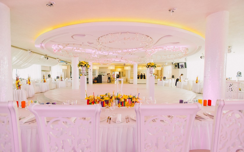 Да, эта статья- единственное, что меня немного огорчало, тк изначально вообще цена была озвучена 4 с хвостиком тыс$. Ведь многое еще зависит от кол-ва человек: больше людей- больше столов, больше салфеток и тд. Я уже сокращала все пункты, как могла. Мне понравились Надины и Настины идеи, хотелось чего-то вот такого нестандартного. Не просто цветов в вазах, которые мне предлагали в остальных студиях декора. К сожалению пока нет других фото, но на террасе еще были задекорированы цветами 3 наших больших плаката. А фото-зону, может я неправильно выразилась, делали не мы, а декораторы тоже. Мы лишь привезли свой реквизит (шапки разные, очки, муз.инструменты и тд.). Ну и как обычно бывает, только при безграничном бюджете люди могут все пункты мероприятия организовать по максимуму. Если все же определил себе конкретный бюджет и пытаешься в него влезть, но не совсем получается, начинаешь сокращать наименее важные (на собственный взгляд) пункты. Не то, чтобы декор для нас был не важен, но просто сам этот Белый зал вполне самодостаточный и не хотелось его сильно перегружать. Вот еще немного фото: