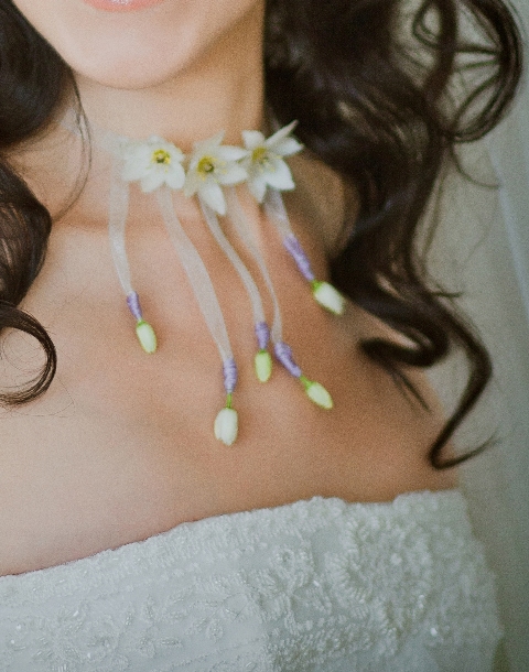 И для очаровательной Екатерины - украшение для прически, "цветочная подвеска" и букет: