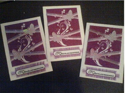 делать приглашалки собираюсь сама - хорошо что руки под это заточены нормально)))) и бантики у меня если и будут, то не кривые)))