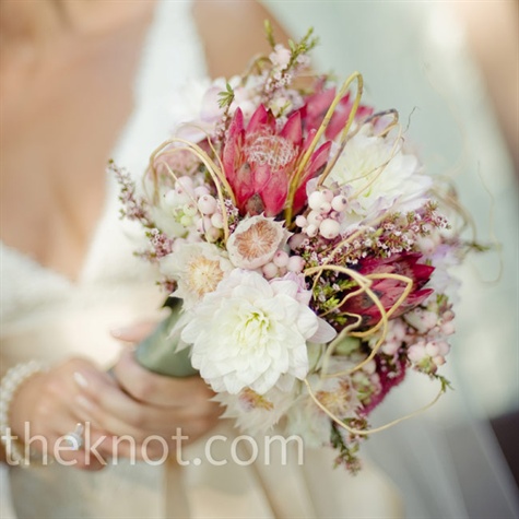 ZarinaНаборчик такой - Хамелациум, симфорикарпус (снежноягодник иначе), протея, далия (георгин). Есть там конечно ещё один цветок мне непонятный Сделать букет один в один конечно не получется (просто невозможно, даже если обратиться к этому же флористу), но близко к аналогу, используя нашу растительность и поставляемые к нам цветы, вполне возможно