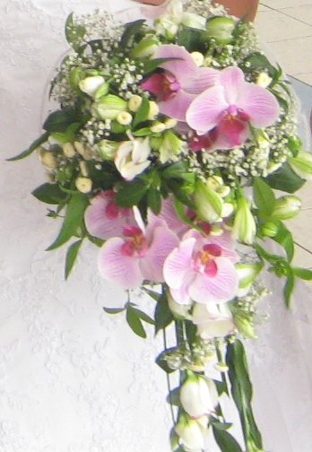 Может кто подкинет идею каскадного букета с орхидеей? Роза абсолютно не мой цветок... Лилии очень люблю, но где-то вычитала, что не совсем свадебный цветы это... Теперь не знаю