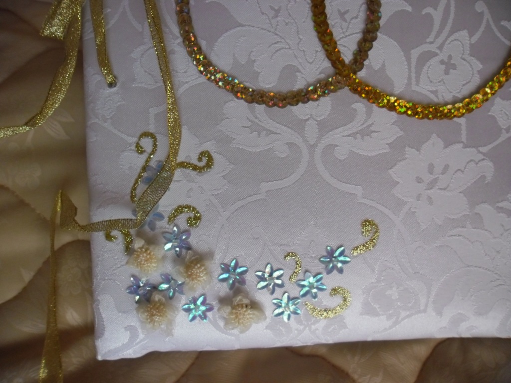 Misterio мне кажется, что в вашем случае можно в альбом пожеланий вклеить свадебные фото OLLEA Ольга, твои работы, как всегда, на высоте!!! =D> =D> =D> Катюша1 без обид, но переборщили Вы с альбомом.... слишком много всего.... ДЕВОЧКИ, МОЖЕТ КОМУ БУДЕТ ПОЛЕЗНО... Я не люблю крепление листов на кольцах, поэтому свой альбом делала из альбома для рисования, в котором листы соединены скрепками (напоминает тетрадку, только с плотными белыми листами А4). На существующую обложку я приклеила очень плотный картон, обтянутый тканью. Правда пока не дооформлена обложка, фотки выкладывать не хочу... А подруга моя делала стилизованную свадьбу, для которой альбомом пожеланий послушил купленный на "Поле чудес" старый картонный фотоальбом (по её словам такого "добра" там навалом). Обложку она покрасила в нужный тон баллончиком, а на каждом листе приклеила фотки гостей, под которыми каждый написал пожелание. В общем, получилось здорово!
