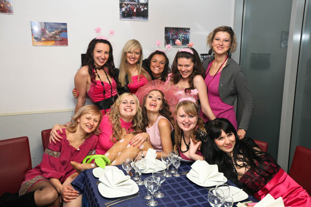 у меня подружка устроила шикарный девишник! Правда свадьба у нее была зимой, но это не помешало нам оторваться как следует. Обязательное условие было - розовые платья и кучеряшки :о)