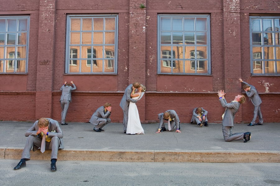 все остались довольны А вообще "невестам на ладошке" и т.п. штампы будут, они будут менять друг друга, и N-е поколение будет считать моветоном фотаться на фоне ядерного взрыва или в обнимку с пришельцем возле ратуши. Например я попробовал один трюк на свадьбе, причем не новый. Ребятам понравилось. Его окрестили "матрица" и далее те кто видели этот снимок, то же хотели "матрицу" в своем свадебном портфолио. вот как это выглядит Вложение: