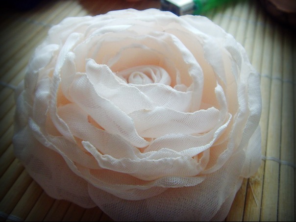 alinabgtuСпасибо,конечно поделюсь,покупаю ткань,можно шифон,шелк,органза...Скручиваю сердцевинку из сложенных кусочков ткани,потом вырезаю лепестки,как у розы,от маленьких к большим,все при помощи свечи обпаливаю,нужно очень быстро и аккуратно,потом начинаю пришивать по кругу лепестки. Можно, что бы Вам было легче, взять бутон розы и разобрать его на составляющие,точно также сделать все из ткани и собрать)).