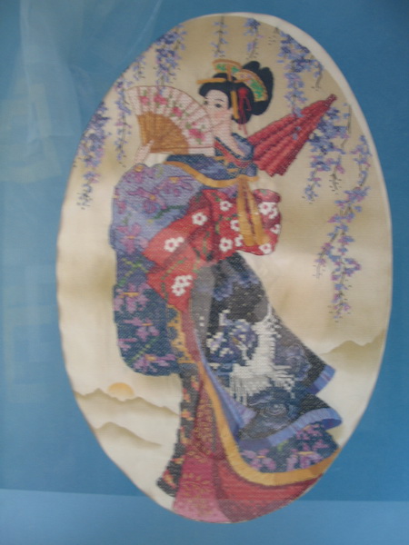 угум-с :) начинала с мелочевки, а потом на большие работы перешла. Вот гейша она см 50-60 в высоту и смешанной техники (куски гладью вышиты). Еще у мамы много моих работ и у бабушки :)