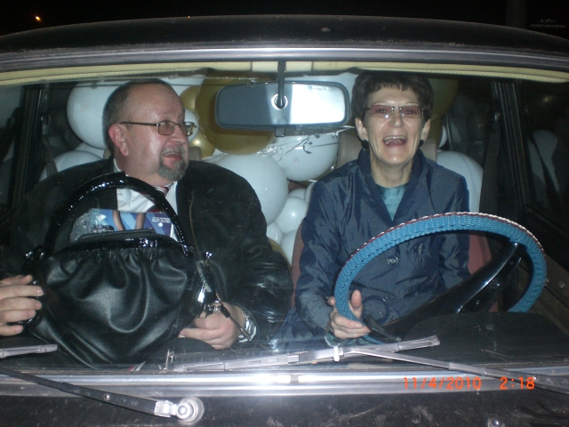 А вот родители жениха. За ними шарики, которые мы решили забрать. Больше мест в машине не было.