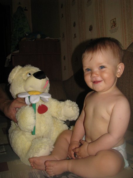 Малышка - чудо!!! Саш, мы вот тут вчера свадебный фильм пересматривали, так там в начале, где ты мне мейк делаешь,еще с таким милым пузиком, вроде вчера было..., а тут во уже какой ангелочек растет. Аж самой скорей такую захотелось... Здоровья вам крепкого-крепкого. Растите на радость маме и папе!!!