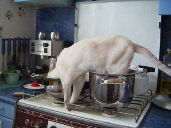 УХАХАХАХА.... Задняя филейная часть охлаждается в кастрюле с холодной водой, а передняя в это самое время с горячностью ворует уху  Это называется кругооборот тепла в кошачьем организме!!! СУПЕР!!!