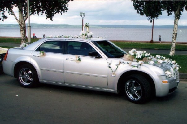 честно? никак))) чот ужас ужасный)) не хватает еще росписи синим маркером под хохлому  бывают невесты с клумбами на головах, а тут машины - целый ботанический сад))) ну, по фоткам видно, что давно дело было. и судя по региону - где-то в Карелии. мот там так модно было в лихие 90-е...