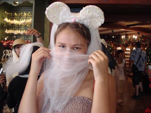 А вот моя фотка с примеренными ушками Минни и фатой. Счастья, как говорится, полные штаны)))