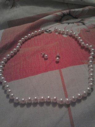 Из украшений я выбрала жемчужную нитку на шею и жемчужные камешки в уши. Покупала в Чараунице, возле ГУМа. Общая цена - 90.000 руб.
