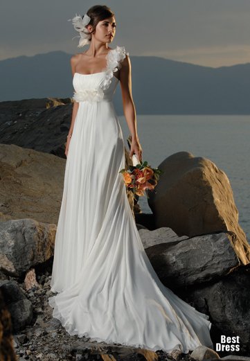 Лена, морская тема может быть в двух варинтах: Del Mare (к которой ты и тянешься, я так понимаю: все оттенки бирюзового, коричнево-желтые), классическая (темно-синий, белый, ярко-красный цвета как основные). В зависимоти от того, к какой морской тематике ты тяготеешь, определяется и платье. Почему-то я тебя вижу в таких платьях - легкая, летящая, воздушная, как морская пена... Но платье должно быть белым в любом случае, или с бирюзовыми элементами.
