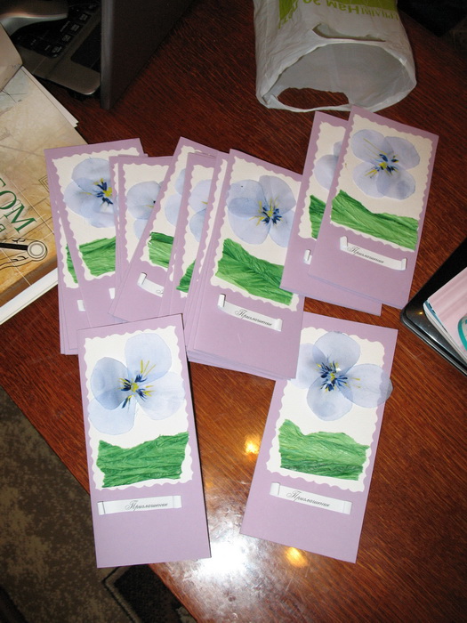 рассадки тоже будем делать сами,они будут совсем простые-на сиреневом фоне белые полоски с именами.