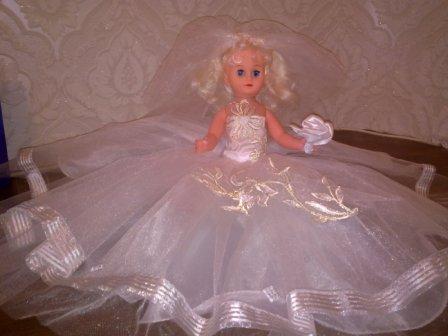Xolodkova511 Надо этой кукле или волосы как-то прибомбить или сделать что-нибудь из трёх волосин, которые уже есть. Буду думать. У неё типа букет в руке, цветочек из ткани, но он белый. У меня ткань от подушечки осталась розовая, сделаю ей розовый букет, как у меня будет; фату переделаю и причёску. В идеале она должна повторять мой образ. Я такая радостная, что её нашла! Спасибо нашему форуму, всё-таки не зря мы здесь общаемся, спасибо =D> =D> =D>