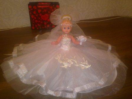 Xolodkova511 Надо этой кукле или волосы как-то прибомбить или сделать что-нибудь из трёх волосин, которые уже есть. Буду думать. У неё типа букет в руке, цветочек из ткани, но он белый. У меня ткань от подушечки осталась розовая, сделаю ей розовый букет, как у меня будет; фату переделаю и причёску. В идеале она должна повторять мой образ. Я такая радостная, что её нашла! Спасибо нашему форуму, всё-таки не зря мы здесь общаемся, спасибо =D> =D> =D>