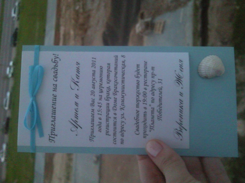 AngelNika, пригласительные очень милые получились! =D> =D> Вот только их надо лично раздавать? Ведь с ракушкой в конверте послать невозможно?