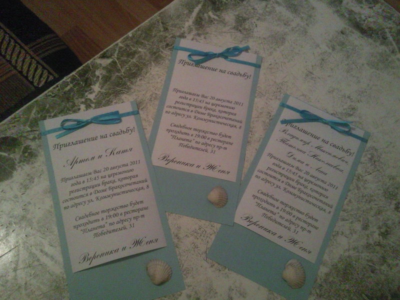 AngelNika, пригласительные очень милые получились! =D> =D> Вот только их надо лично раздавать? Ведь с ракушкой в конверте послать невозможно?