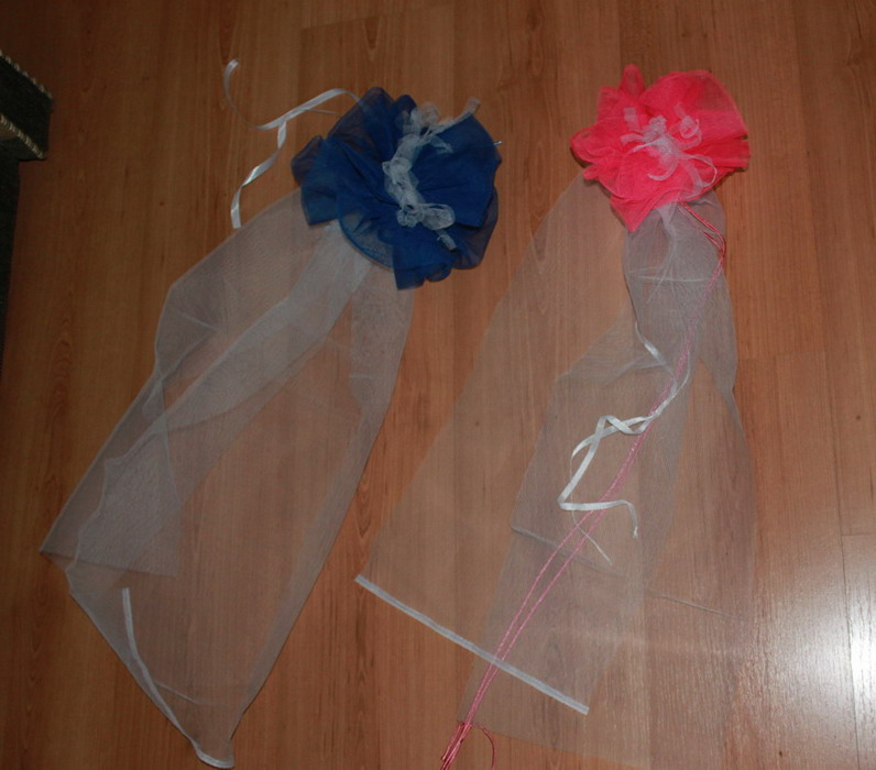Bonny, спасибо!!:) Кроха, Martinika-Marine, пасиб, мама мастерица и правда) Главное еще эти банты на машины прибомбахать!:) Цветик,я никогда не крахмалила фатин, но говорят помогает, хотя у подружки одной была свадьба у неё фатин обвис почему-то.  Так что могу подсказать, где покупала свой фатин ( на девичнике на фатах он же, поэтому таким торчком)